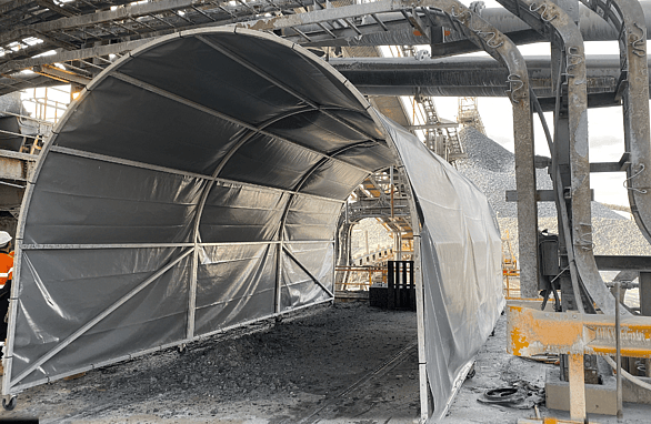 Dragline covers, excavator dust boots, haul truck tarps, work habitats and Kevlar chutes for Pilbara and Goldfields operations. Durable protection for shutdowns and daily maintenance.